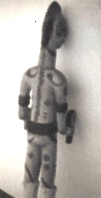 In yet another style, we have this shrine figure carved by Njoku at the Oriagu market area. It is a more rectangular and "blocky" type of rendering. It was photographed by PCV Science Teacher Bill Shurtleff, serving in Okigwe. Bill and I made several collection trips together. After his Peace Corps service, he lived in Yoruba country, collecting a volume of carvings, which he sent home to California. The funds he raised from their sale were used for scholarships for his former pupils at Okigwe. Bill and I met again in Boston in 1967, where we worked together on the Peace Corps Nigeria Training staff.