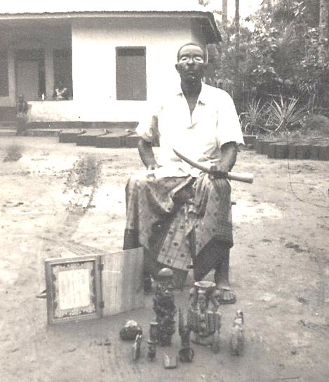 One day, with PCV teacher Bill Surtleff of Okigwe, we visited Chief Aligwekwe in the village of Etiti on the Umahia Road. There we met a dibia, or diviner, who had many things hanging in the ceiling of his hut. The following is an exact transcription from my field notes journal, including flaws.