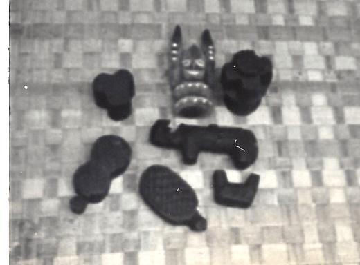 I will attempt to describe some of them and their purpose, as pictured in the field photos below. The best discussion of these I have found is in the book Igbo Arts- Community and Cosmos, by Herbert M. Cole and Chike C. Aniakor, pp 72-74, which I recommend. Many pieces are pictured there. From 1965 to 1966, I collected several pieces identical to those shown on the pages of Cole's book. In the Gallery above, dozens of divination pieces are presented on pages 13-19, including small ikengas. In the individual pictures there, the Detailed Documentation window can be entered to see whatever provenance I was able to obtain for each piece at the time.